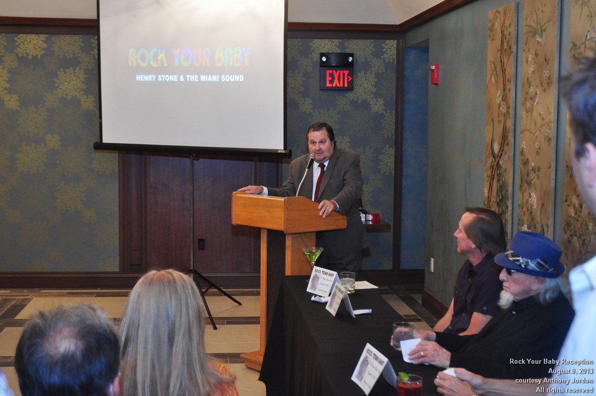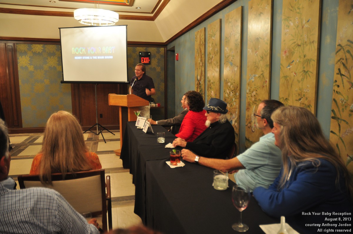 On Thursday, August 8th, Henry Stone Music and Beacon Films hosted a fundraising reception to introduce the community to the upcoming documentary Rock Your Baby. Rock Your Baby is a uniquely American story of how a group of individuals with raw talent and diverse backgrounds, led by the indefatigable determination and genius of one man, exported the music of Miami to the world. That man is Henry Stone. Over sixty invited guests enjoyed clips from the movie and were introduced to the creators, the Producers Mitchell and Debra Egber, Director Mark Moormann, and, of course, the man himself, Henry Stone. Appetizing hors d’eouvres were provided by Chef Inspired Creations.
